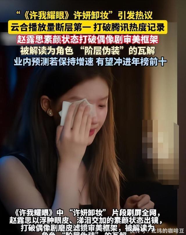 《许我耀眼》这部剧让人可以在不同角度去思考两种角色的反差,以及看到现在观众看剧的审美。 毋庸置疑,饰演女主许妍的赵露思也成为了近段时间最热门的女明星。