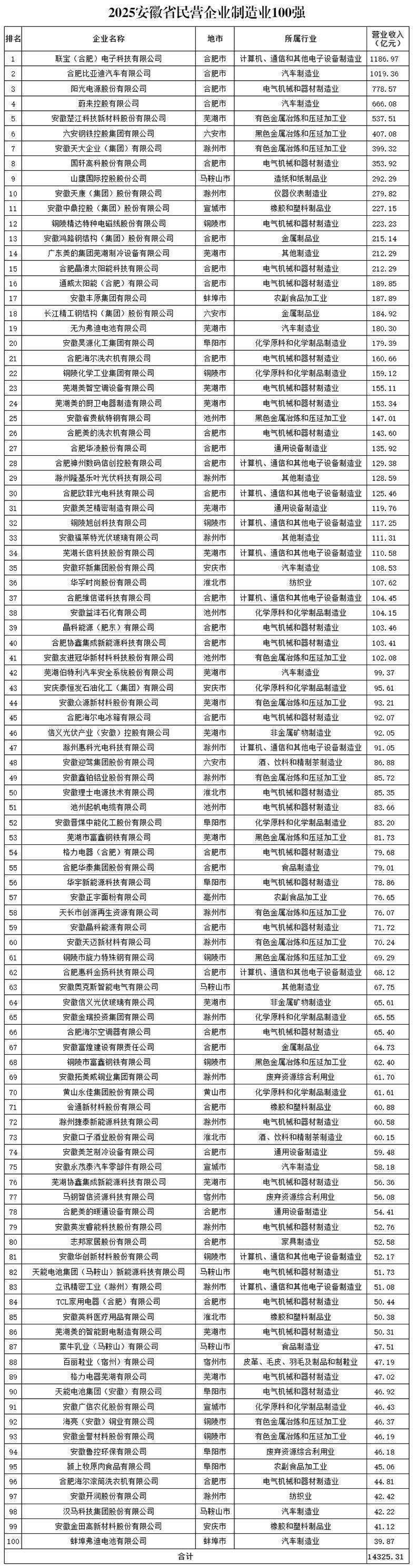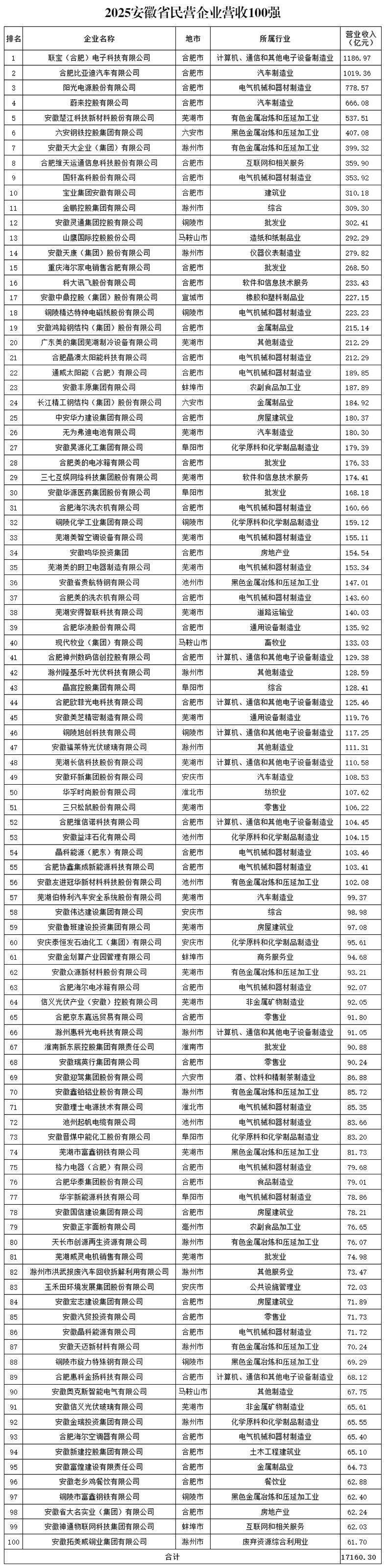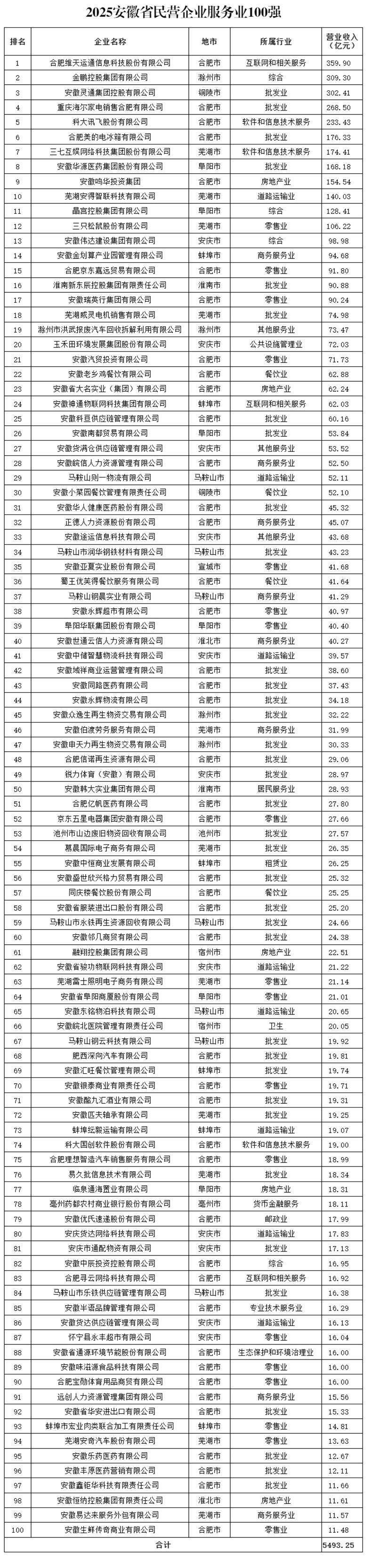 人民网合肥10月16日电 (记者高飞跃)10月16日上午,2025安徽省民营企业百强发布会在合肥举行。活动现场发布了2025安徽省民营企业百强榜单。